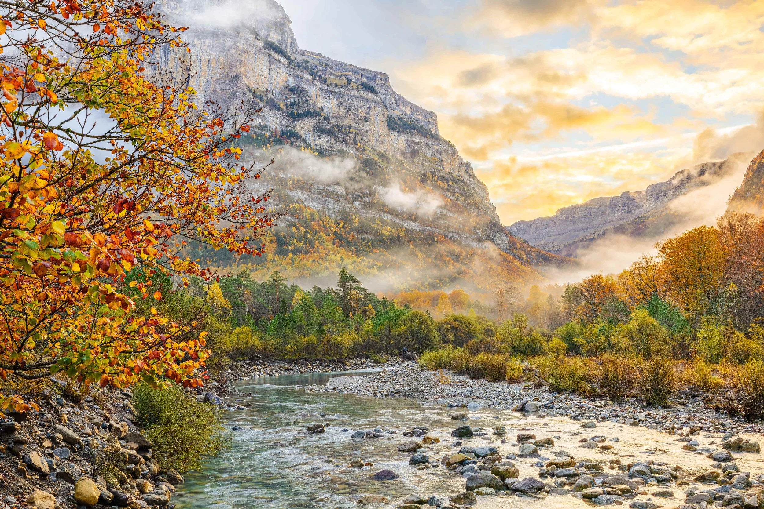 Amanecer en el río Arazas. Otoño en el Valle de Ordesa.