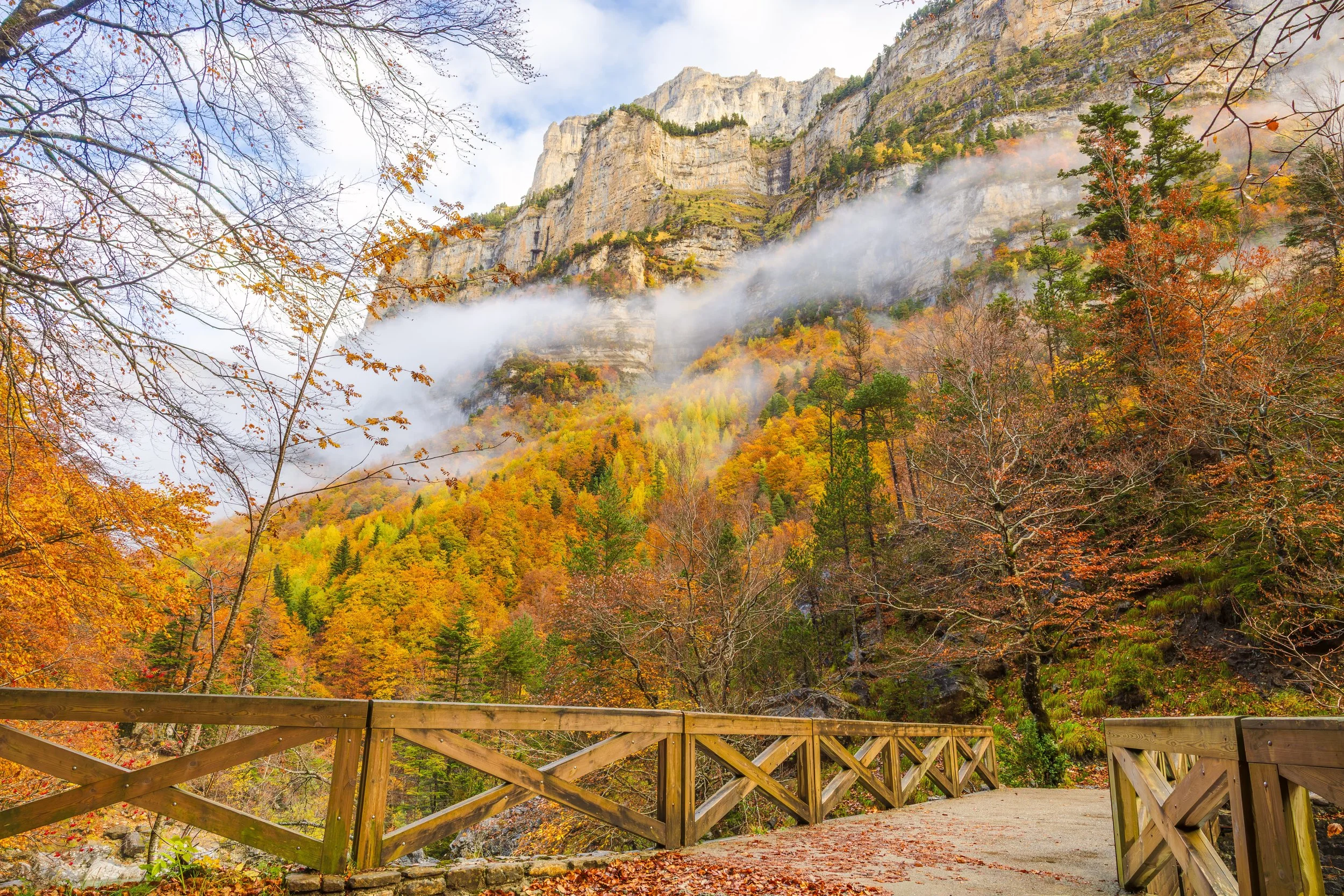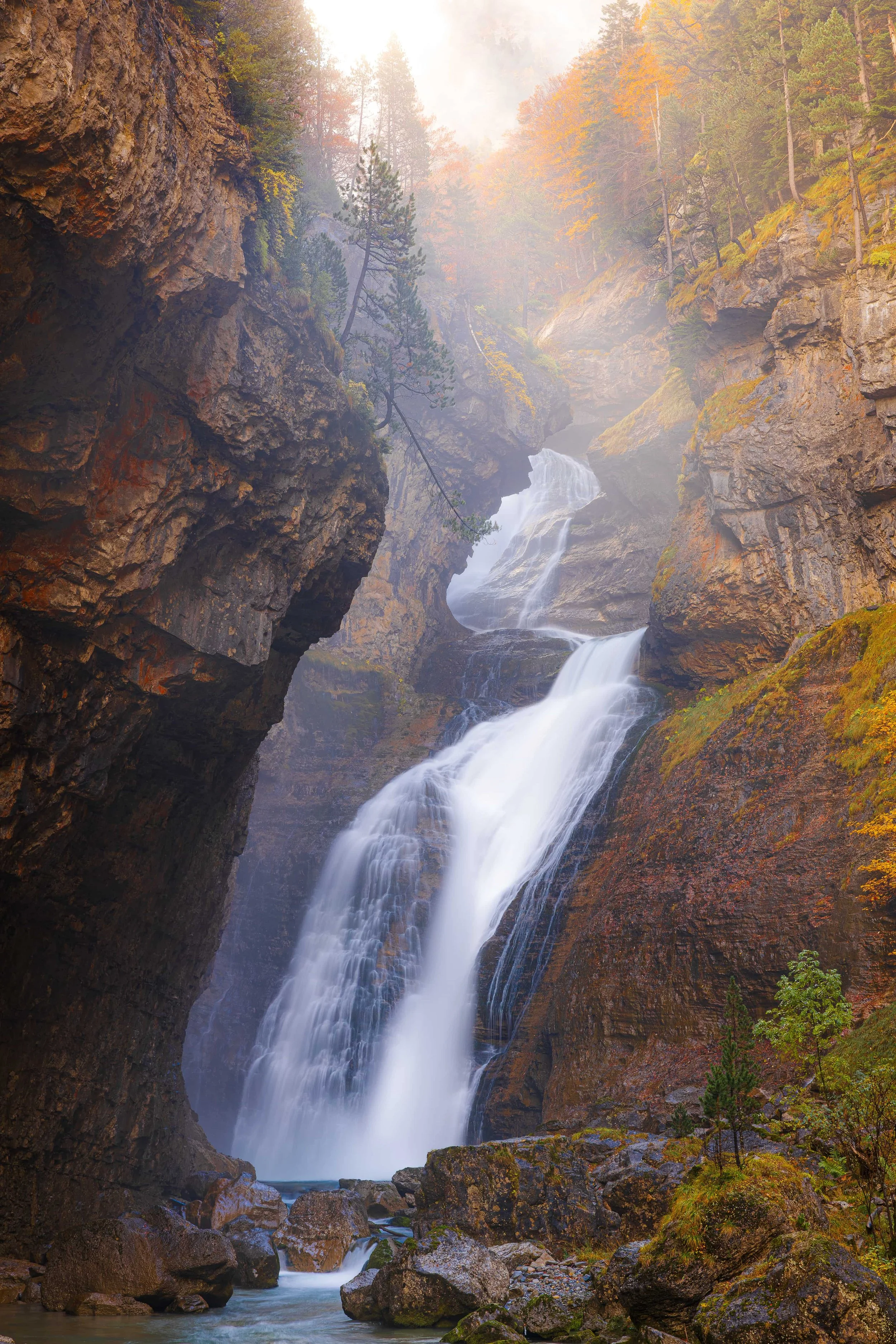 Paisaje otoñal en la Cascada del Estrecho. Parque Nacional de Ordesa y Monte Perdido.